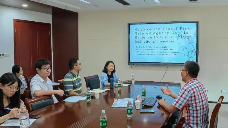 5月31日下午2时,应金融八戒体育官网(中国)有限公司邀请,深圳大学经济八戒体育官网(中国)有限公司金融与财务学特聘教授、博士生导师李东辉教授在第三实验楼1329报告厅做题为“Resolve the Global Risk-Related Agency Conflict: Evidence from U.S. Foreign Institutional Investors”的学术报告。报告由金融八戒体育官网(中国)有限公司副院长王翌秋教授主持,八戒体育官网(中国)有限公司部分师生参加了此次讲座。