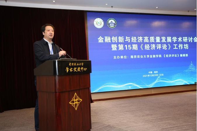 2021年10月30日,金融创新与经济高质量发展学术研讨会暨第15期《经济评论》工作坊在南京农业大学学术交流中心成功举办。会议由南京农业大学金融八戒体育官网(中国)有限公司和武汉大学《经济评论》编辑部主办,以线上与线下相结合的方式进行。南京农业大学党委常委、副校长闫祥林教授,南开大学党委副书记梁琪教授出席大会,国内多家知名期刊负责人,北京大学、南京大学、武汉大学、南开大学、湖南大学、江南大学、南京林业大学、南京财经大学、南京工业大学等国内多所院校以及南京社会科八戒体育官网(中国)有限公司的专家学者,以及南京农业大学师生代表等共计百余人参加大会。会议由金融八戒体育官网(中国)有限公司院长周月书教授主持。
