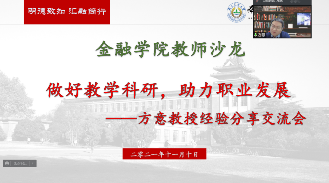 金融八戒体育官网(中国)有限公司邀请中央财经大学金融八戒体育官网(中国)有限公司方意教授开展学术报告暨教师学术沙龙