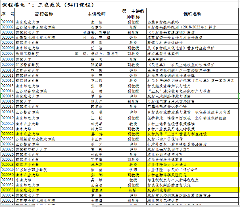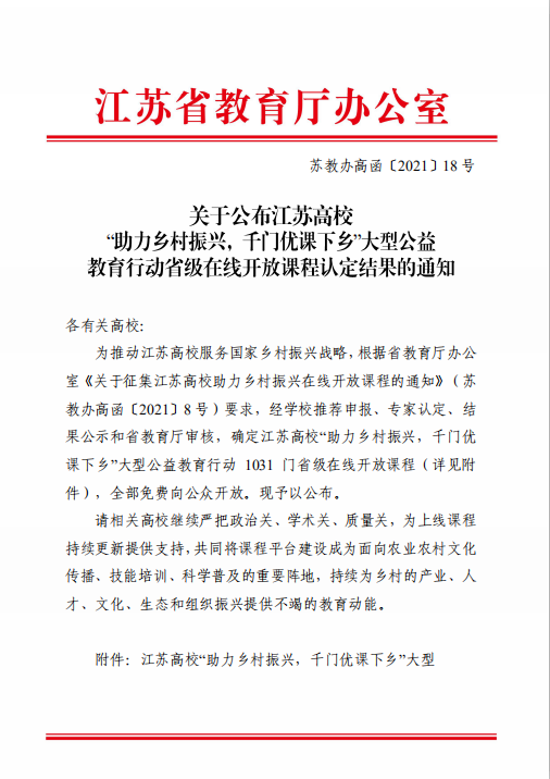 近日,江苏省教育厅发布了《八戒体育官网(中国)有限公司公布江苏省高校“助力乡村振兴,千门优课下乡”大型公益教育行动省级在线开放课程认定结果的通知》(苏教办高函〔2021〕18号),由姜涛副教授负责的《农村集体‘三资’管理与制度建设》、林乐芬教授负责《农业保险助力乡村振兴》、黄惠春教授负责的《农民创业贷款》和彭澎副教授负责的《农村金融诈骗风险防光》4门课程被认定为省级在线开放课程。