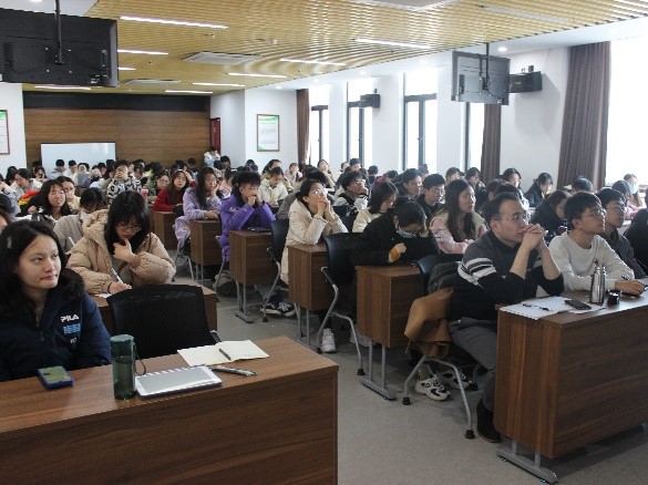 交流互动环节,同学们围绕论文选题方面进行提问,刘西川教授耐心的回答了问题并分享了相关经验。 最后,彭澎老师对讲座进行了精彩总结。他表示刘教授对选题内容的讲解覆盖全面并富有深度,对提高学生选题能力具有重要意义。