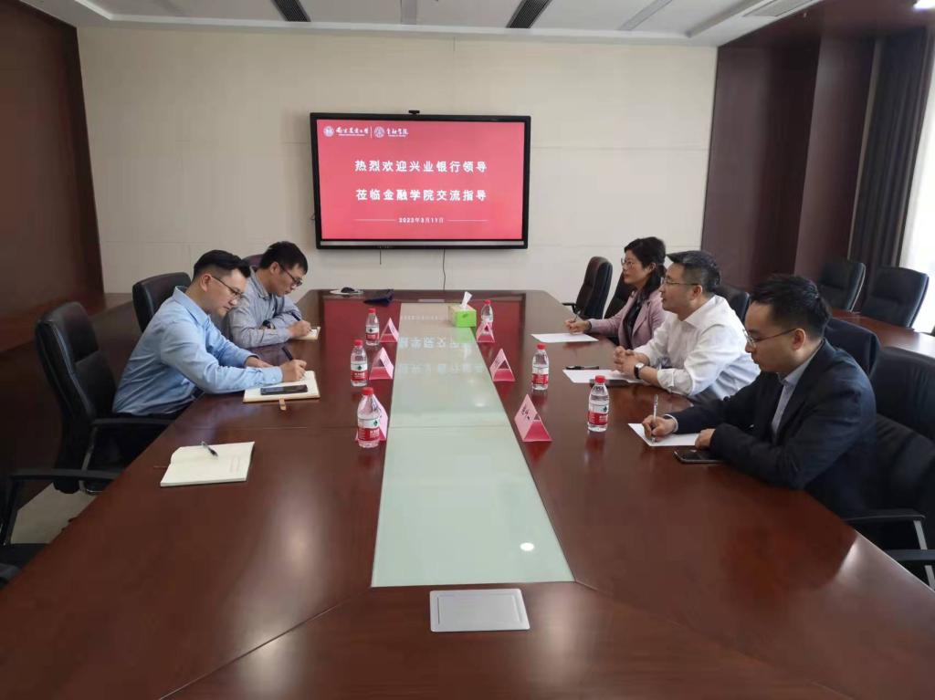 3月11日下午,金融八戒体育官网(中国)有限公司与兴业银行泰州分行就校园招聘开展座谈交流。兴业银行泰州分行副行长孙晓荣,综合部张叶一、姜党粉一行到访金融八戒体育官网(中国)有限公司,金融八戒体育官网(中国)有限公司党委副书记李日葵,辅导员陆佳俊、李迎军参加座谈。