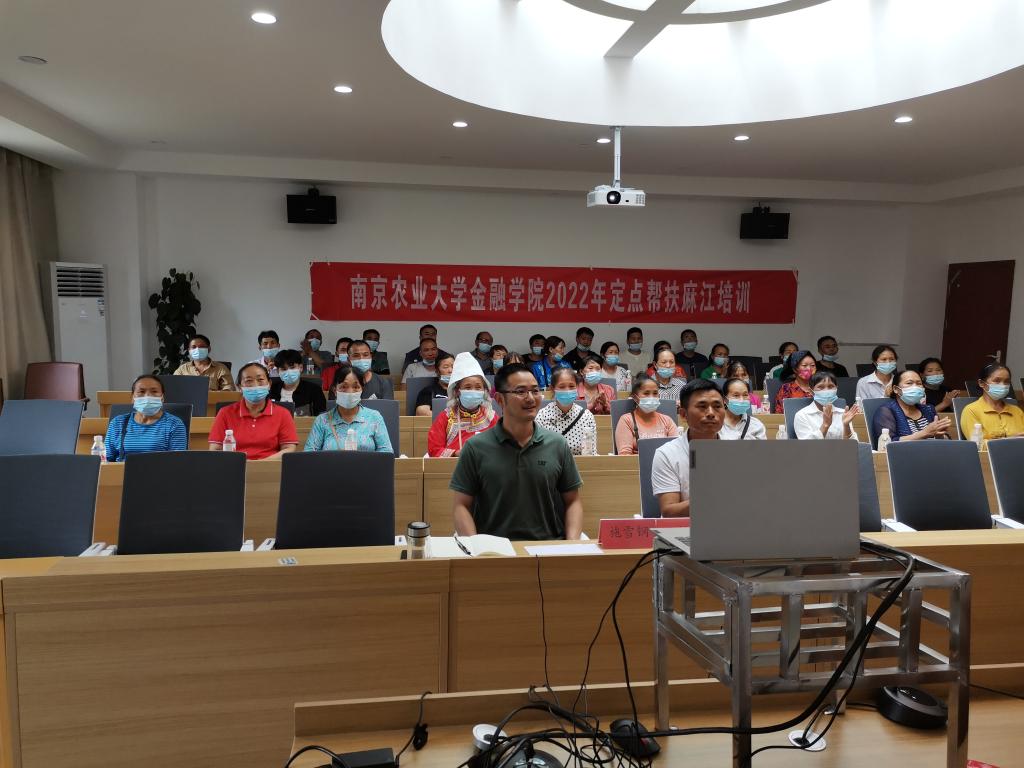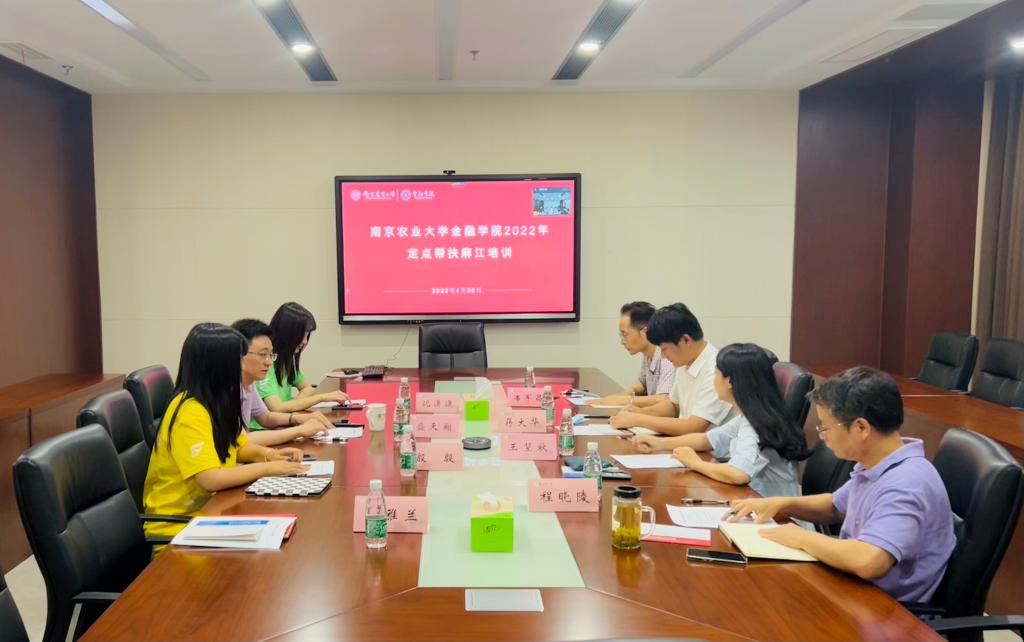 2022年6月30日下午,南京农业大学金融八戒体育官网(中国)有限公司2022年定点帮扶麻江培训会议在金融八戒体育官网(中国)有限公司1202会议室召开。本次培训采取线上形式,邀请金融八戒体育官网(中国)有限公司盛天翔副教授、沈潇潇和殷殷分别作乡村振兴中的金融科技应用,金融常识及防诈等方面内容的培训。麻江县委常委、副县长施雪钢,南京农业大学社会合作处乡村振兴科科长蒋大华,金融八戒体育官网(中国)有限公司金融支部书记潘军昌,会计支部书记程晓陵,学生办辅导员徐冰慧,办公室秘书朱雅兰以及麻江县农业企业经营大户、农户等42人参加了培训会议。会议由金融八戒体育官网(中国)有限公司副院长王翌秋和麻江县农业农村局、乡村振兴研究院主任李茂贵同志主持。