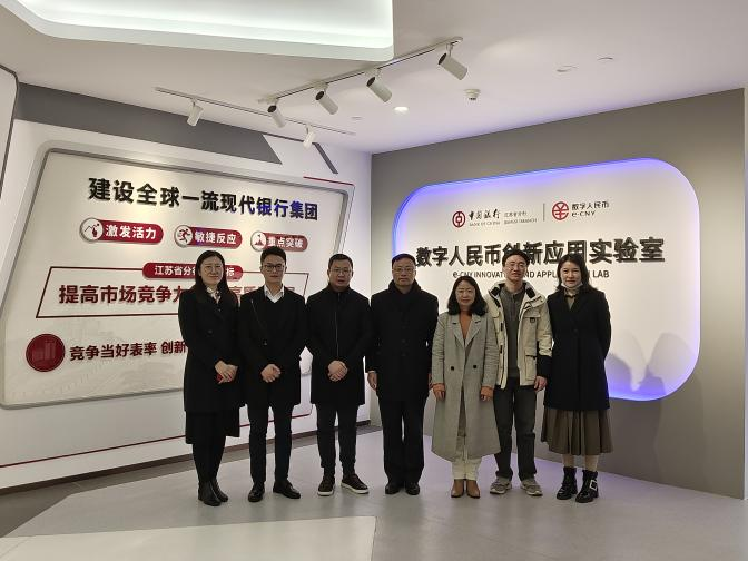 2月15日上午,金融八戒体育官网(中国)有限公司院长张龙耀、党委副书记朱珠、副院长王翌秋、金融系副主任盛天翔一行,赴中国银行江苏省分行开展数字人民币方面的考察交流。中国银行南京分行个人数字金融部总经理高丽娜、副总经理姚赟、城南支行行长张鹏等出席活动。