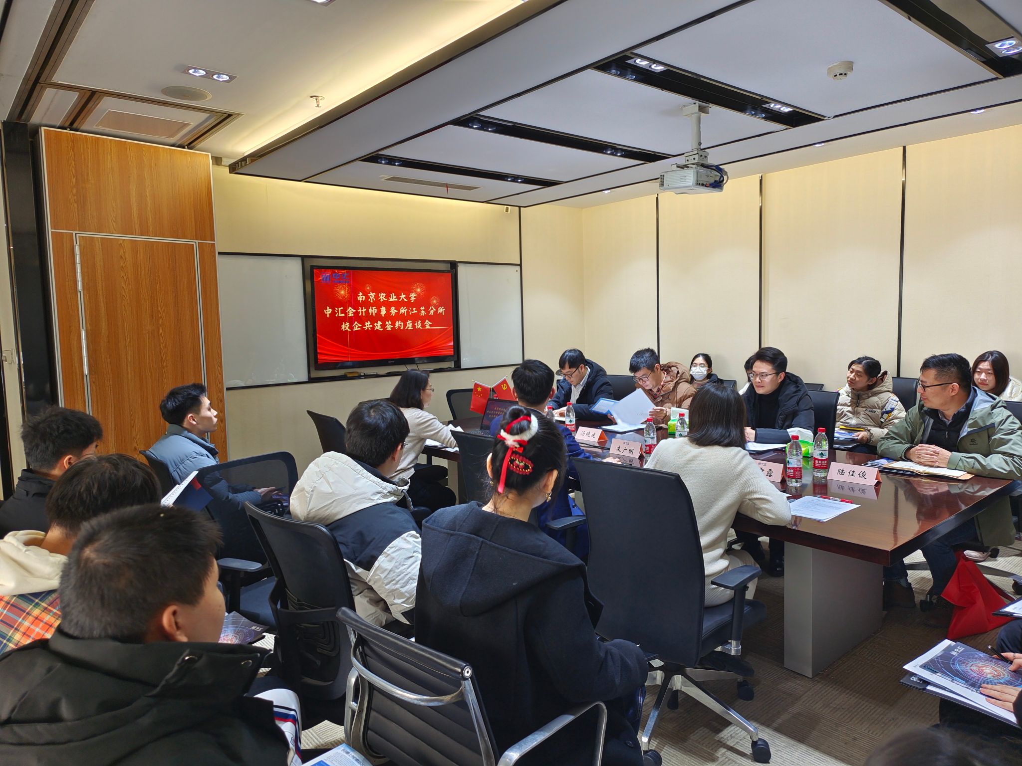 为认真落实访企拓岗促就业专项行动的要求,扎实推进毕业生就业工作,1月9日下午,金融八戒体育官网(中国)有限公司党委副书记朱珠、会计系系主任汤晓建、辅导员陆佳俊、李迎军、21名本研学生代表走访中汇会计师事务所江苏分所,深入调研企业发展情况和校企合作需求,并共建就业创业实习基地。中汇会计师事务所江苏分所所长朱广明、人事行政经理王露露、行政高级主管王鹃参加活动。