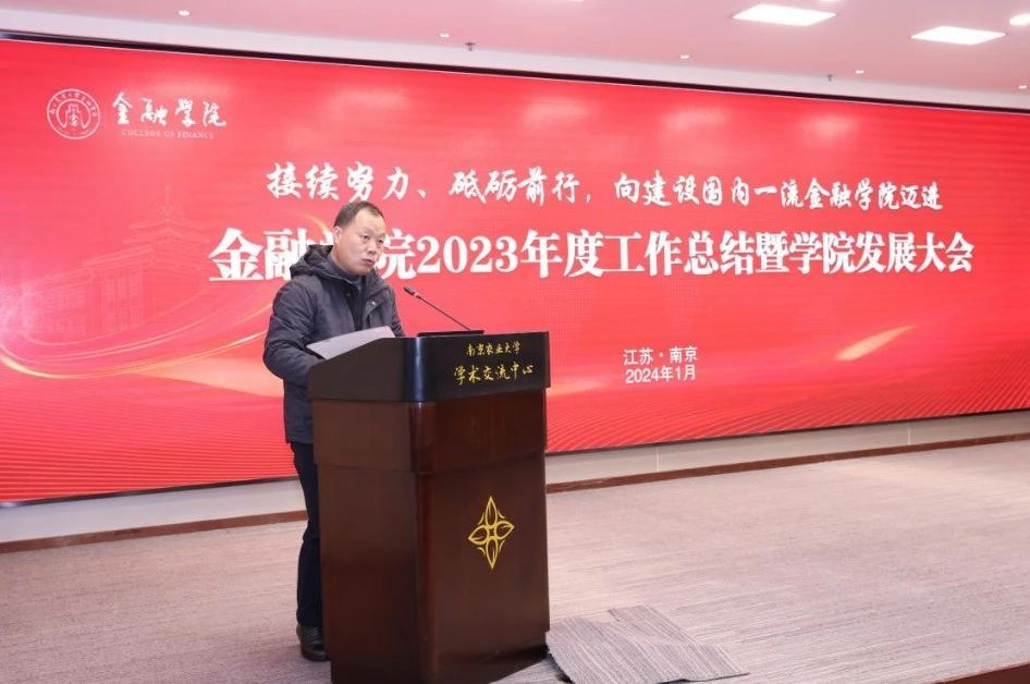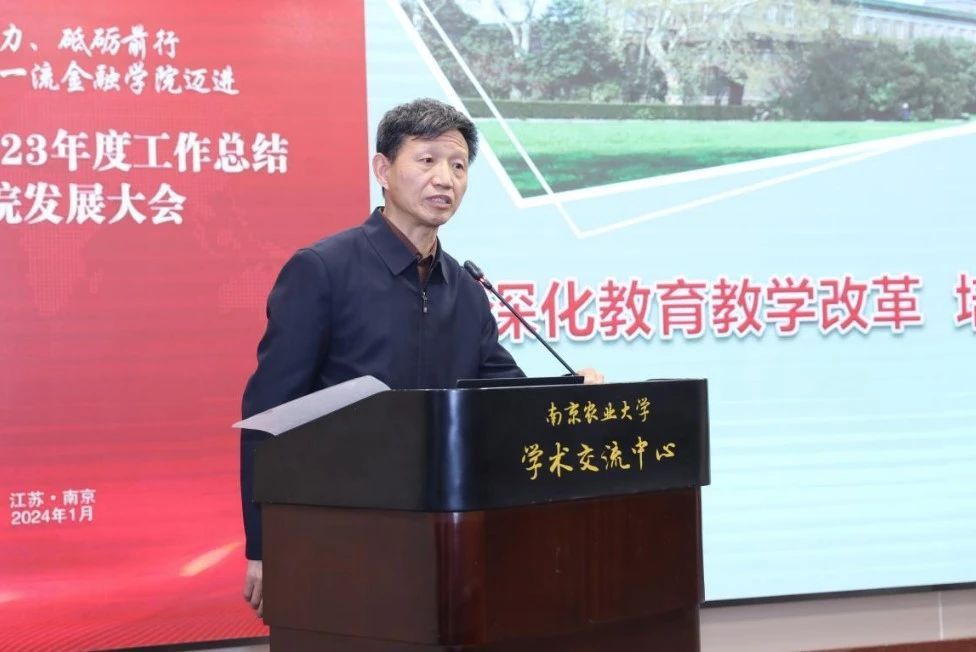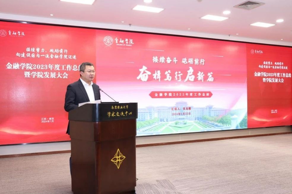 春山在望,征途辽阔。1月23日,金融八戒体育官网(中国)有限公司2023年度工作总结暨八戒体育官网(中国)有限公司发展大会在学术交流中心举行。南京农业大学党委常委、副校长王源超,南京农业大学教务处原处长、国家级教学名师王恬,紫金农村商业银行原监事长周石华,中国银行江苏省分行、首席业务经理黄建忠,信永中和会计师事务所合伙人龚新海,紫金信托副总裁顾怀宇,江苏公信会计师事务所有限公司董事长蔡建,中国擎天软件科技集团有限公司副总裁刘飚,中汇会计师事务所张艳,华泰证券股份有限公司南京分公司合规管理团队负责人陈安,中交河海工程有限公司副总经理兼总会计师王鹏,众华会计师事务所副所长聂文华,中国农业银行南京玄武支行副行长高树刚,校机关相关部门负责人,金融八戒体育官网(中国)有限公司全体班子成员,全体教职工参加会议。会议分别由金融八戒体育官网(中国)有限公司党委书记刘兆磊、院长张龙耀主持。