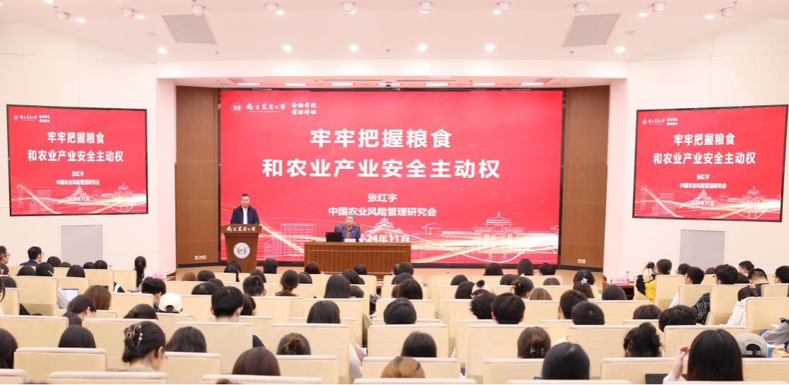 11月15日下午,中国农业风险管理研究会会长张红宇受邀为我院做题为《牢牢把握粮食和农业产业安全主动权》的学术报告。报告由金融八戒体育官网(中国)有限公司院长张龙耀教授主持,副院长张娆教授、会计系陈东平教授等十余名教师出席。八戒体育官网(中国)有限公司200余名本硕博同学参加。