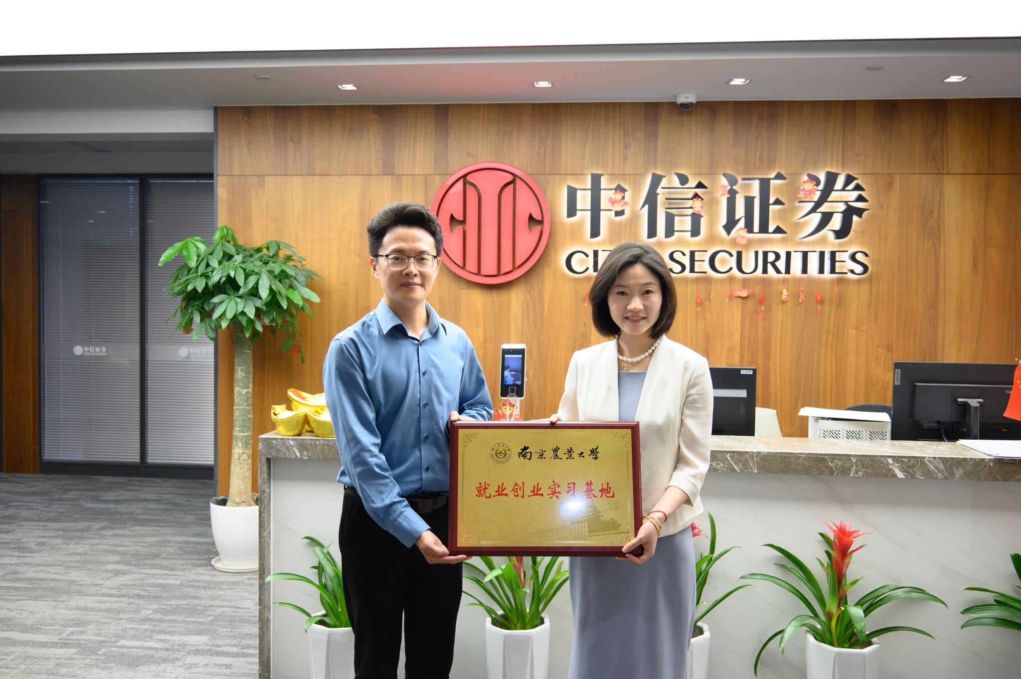 现场金融八戒体育官网(中国)有限公司与中信证券江苏分公司举行了“就业创业实习基地”授牌仪式,标志着双方在人才培养和实习就业领域的合作迈出了重要一步。
