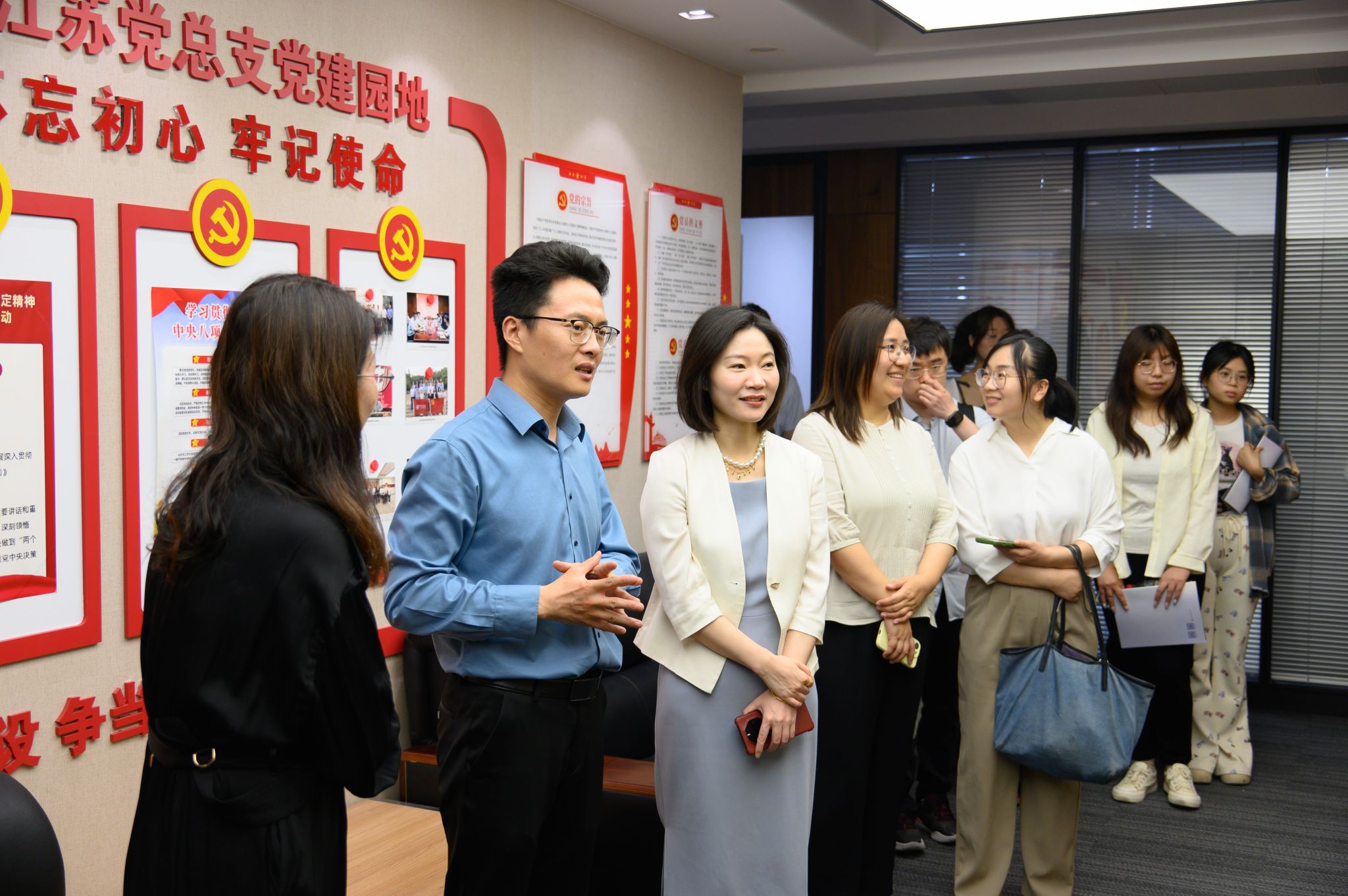 戴玮对金融八戒体育官网(中国)有限公司的师生表示热烈欢迎,并带领大家参观了公司的办公环境和企业文化展示。八戒体育官网(中国)有限公司师生对中信证券的发展背景、愿景使命及江苏分公司的区域发展特色有了进一步了解。戴玮表示,中信证券江苏分公司高度重视人才培养,致力于为应届毕业生提供全面的培训体系和广阔的发展平台,热忱欢迎南农学子加入,共同成就梦想。
