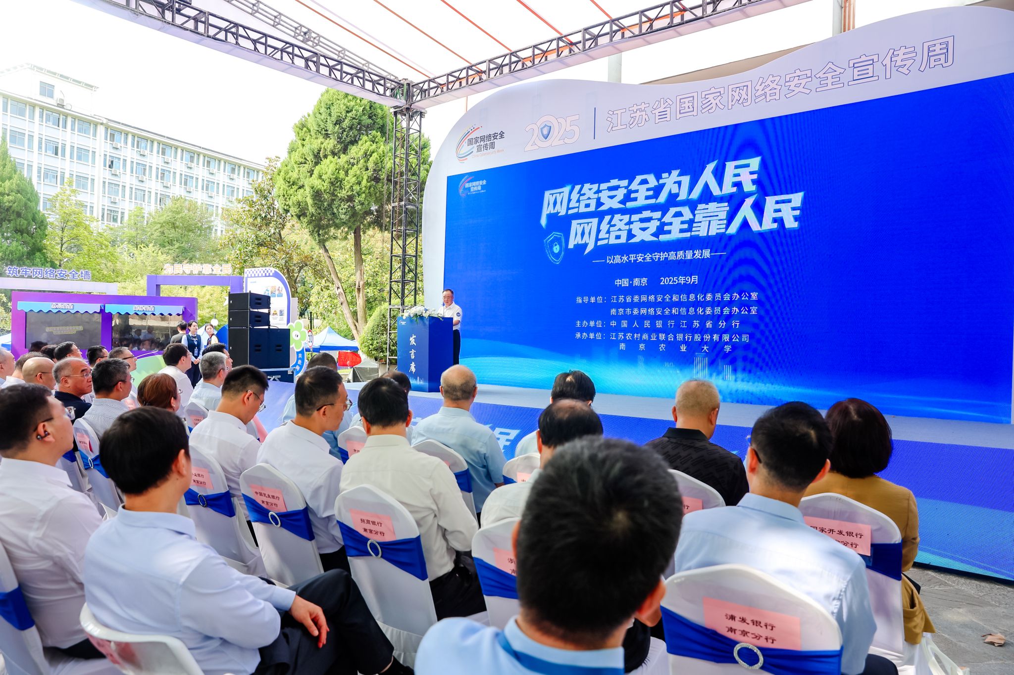 9月19日上午,2025年江苏省国家网络安全宣传周“金融日”活动在我校卫岗校区成功举行。活动由江苏省委、南京市委网信办指导,中国人民银行江苏省分行主办,南京农业大学与江苏农商联合银行联合承办,聚焦“以高水平安全守护高质量发展”主题,通过政校企协同创新模式打造沉浸式金融安全教育课堂,为全省高校师生及公众筑牢网络安全屏障。我校党委常委、副校长单正丰,中国人民银行江苏省分行党委委员、副行长陈涤非,江苏农商联合银行党委委员、首席信息官李健等出席本次活动。