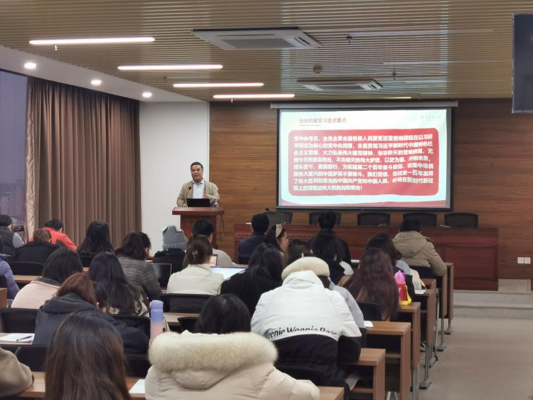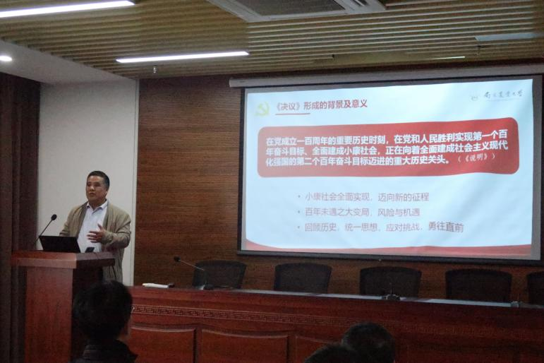 首先,梁老师简要介绍了十九届六中全会的概况,并从《中共中央八戒体育官网(中国)有限公司党的百年奋斗重大成就和历史经验的决议》形成的背景及重要意义展开,讲解了《决议》的主要内容及重点要点。最后,梁老师带领学员们学习了中国共产党百年奋斗的历史经验和习近平总书记的重要讲话精神,勉励学员们要深入学习十九届六中全会的会议精神,以史为鉴、开创未来。