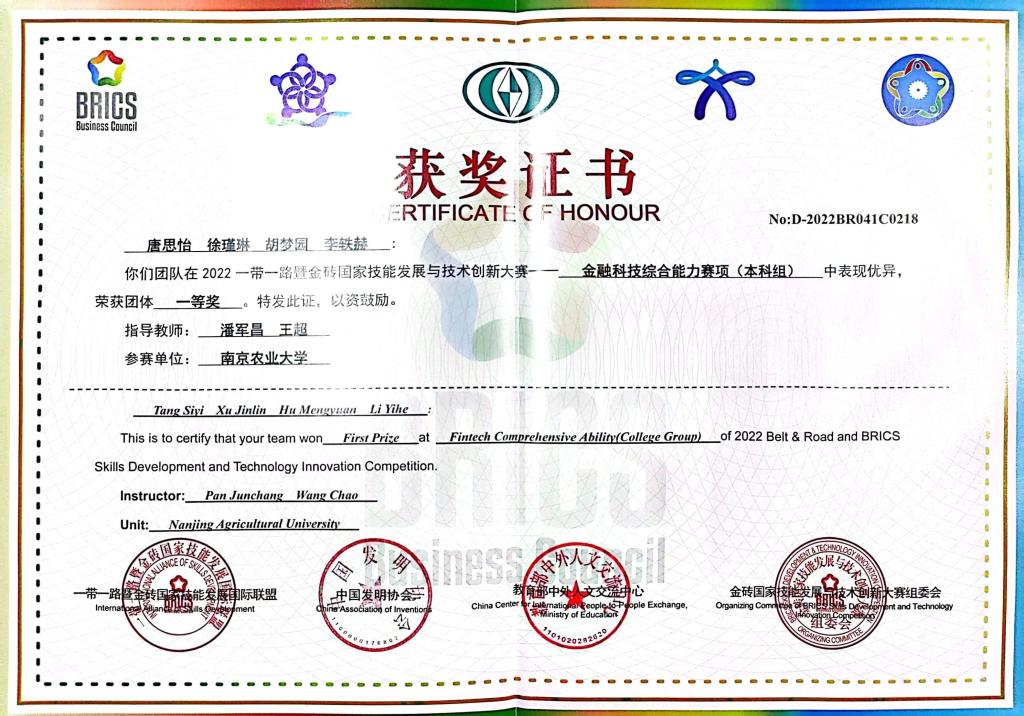 近日,2022一带一路暨金砖国家技能发展与技术创新大赛结果正式公布,我院团队荣获金融科技综合能力赛项(本科组)团体一等奖,八戒体育官网(中国)有限公司荣获最佳组织奖。