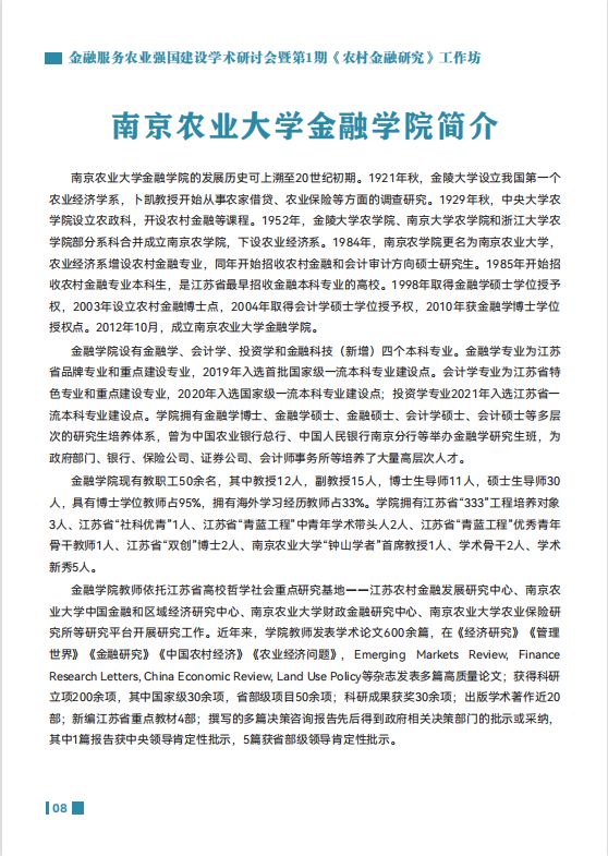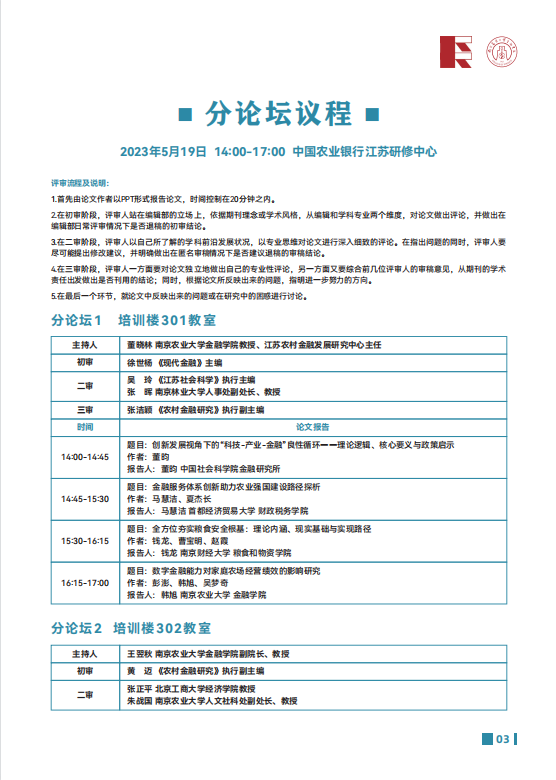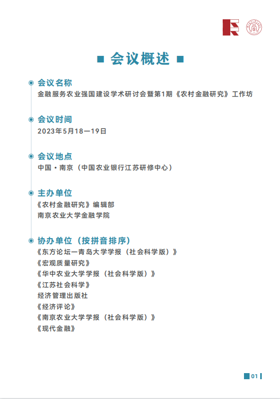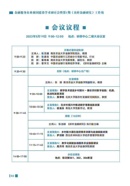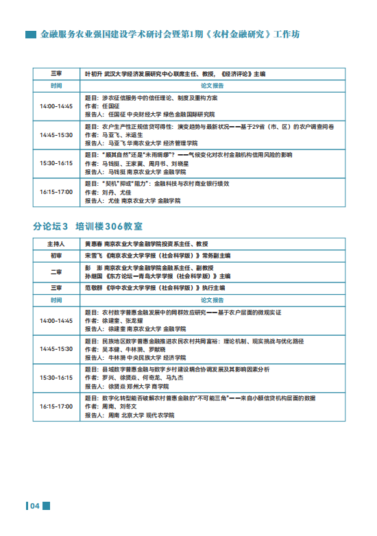 论坛议程丨金融服务农业强国建设学术研讨会暨第1期《农村金融研究》工作坊