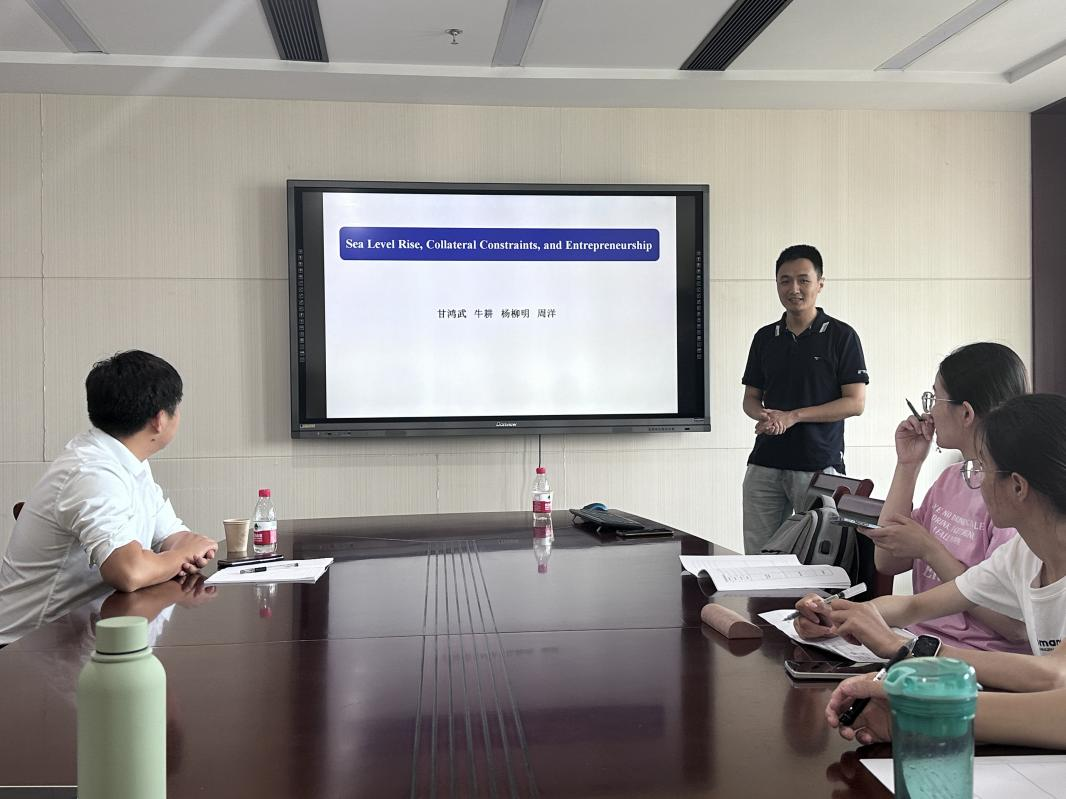5月22日上午,武汉大学经济与管理八戒体育官网(中国)有限公司副教授周洋受邀为我院做题为《海平面上升、抵押品限制和创业》的学术报告。报告由金融八戒体育官网(中国)有限公司吴雨教授主持,八戒体育官网(中国)有限公司30余名师生参加。