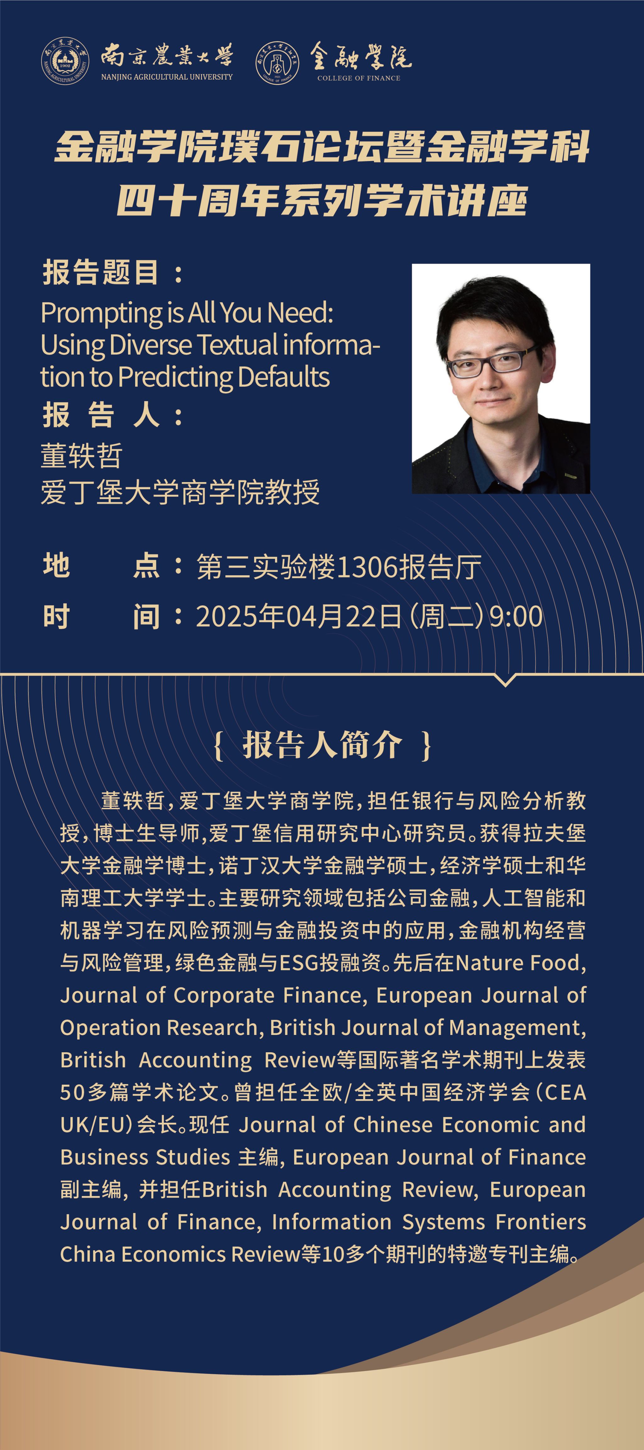 讲座预告(4.22)丨Prompting is All You Need: Using Diverse Textual information to Predicting Defaults