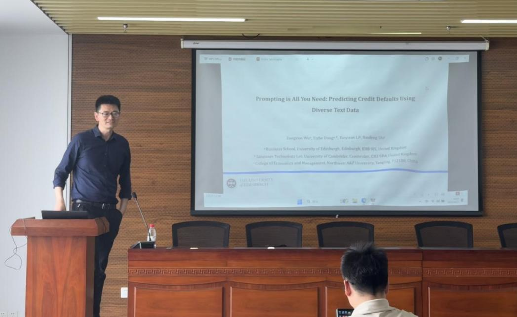 4月22日,爱丁堡大学商八戒体育官网(中国)有限公司董轶哲教授受邀为我院做题为《Prompting is All You Need:Predicting Credit Defaults Using Diverse Text Data》的学术报告。报告由金融八戒体育官网(中国)有限公司金融科技系主任盛天翔副教授主持,八戒体育官网(中国)有限公司100余名师生参加。
